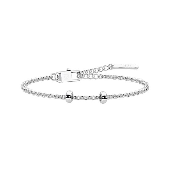 Bracciale in acciaio 316L, lunghezza regolabile da 15.5 a 18.5 cm, con catena rolò, stopper con silicone. Dimensioni: stopper Ø 5 mm, catena 2 mm