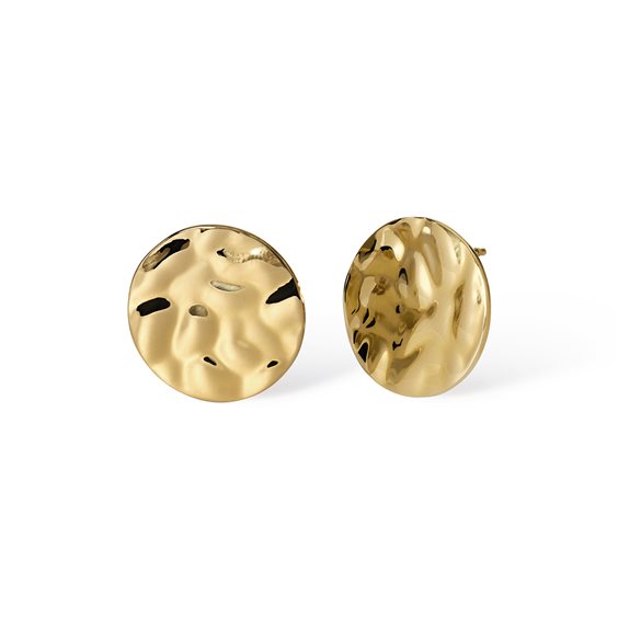 Orecchini a lobo tondi dorati effetto martellato. • Diametro orecchino: 20 mm • Materiale: Acciaio 316L, PVD giallo