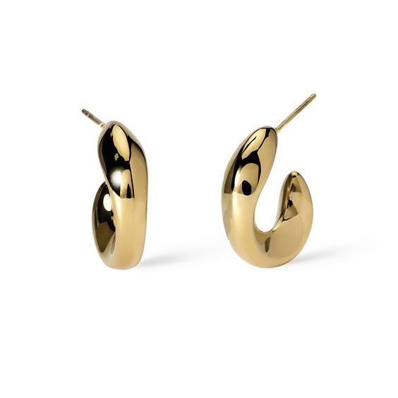 Orecchini in acciaio a forma di mezzaluna arricciata. • Dimensione orecchino 22 x 17 • Materiale: Acciaio 316L, Acciaio 304, PVD giallo