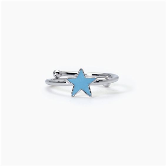 Anello in argento 925/°°° rodiato con elemento stellina smaltato 7x6.5 mm, misura regolabile da 4 a 16