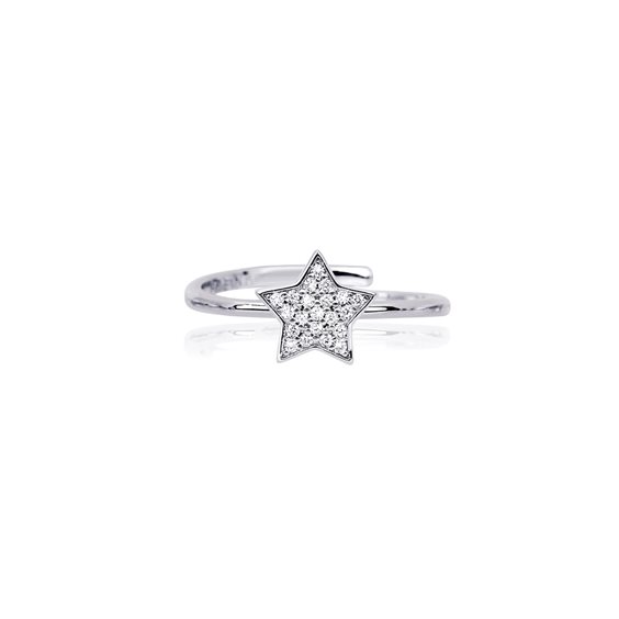 Anello in argento con stella in pavé di zirconi. • Misura regolabile, dalla 11 alla 19 • Materiale: Argento 925, Zirconi • Designed by Mabina in Italy