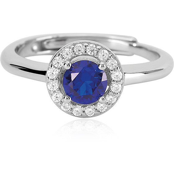 Anello Da Donna Di Mabina Gioielli. Anello In Argento 925 Rodiato Con Zaffiro Sintetico Tondoe Zirconi Bianchi. Incastonatura Dello Zircone Centrale A Griffe A Quattro Punte. Misura Regolabile, Dalla 11 Alla 19. Materiale: Argento 925 925 , Zirconi