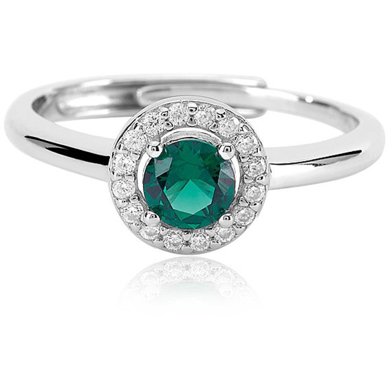 Anello Da Donna Di Mabina Gioielli. Anello In Argento 925 Rodiato Con Smeraldo Sintetico Tondoe Zirconi Bianchi. Incastonatura Dello Zircone Centrale A Griffe A Quattro Punte. Misura Regolabile, Dalla 11 Alla 19. Materiale: Argento 925 , Zirconi,