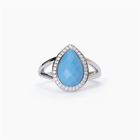 Anello in argento 925, Turchese e Zirconi Misura regolabile da 11 a 19