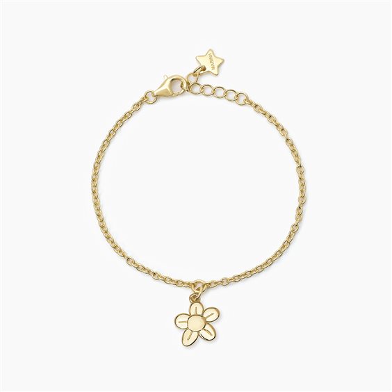 Bracciale argento 925/°°° dorato con forzatina Ø 2 mm e fiorellino pendente 9x9x10.15 mm, lunghezza regolabile da 14.50 a 16.50 cm
