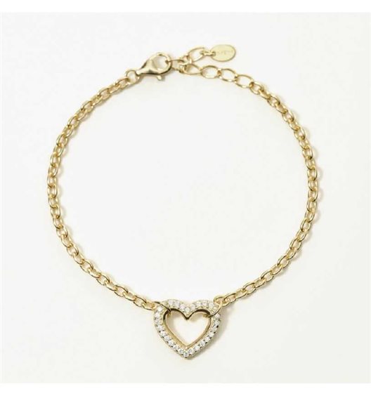 Bracciale in argento 925/°°° dorato con catena rolò larghezza 2.90 mm, ciondolo cuore 15x13.25 mm e zirconi bianchi Ø 1.25 mm, lunghezza regolabile da 16 a 19 cm