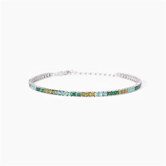 Tennis in argento con cubic zirconia taglio carrè multicolor in tonalità verde
