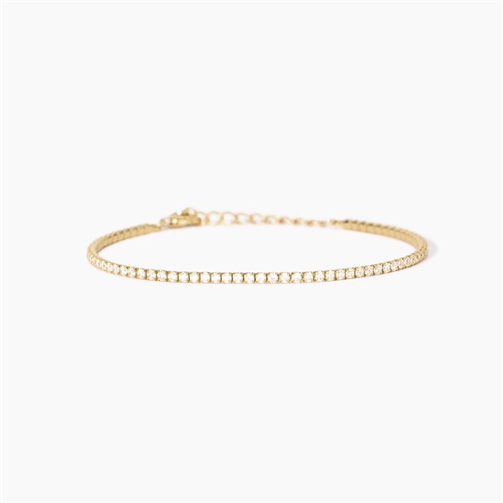 Bracciale tennis in argento 925/ººº placcato oro 18K con zirconi Ø 1.75 mm, lunghezza regolabile da 15.5 a 18.5 cm