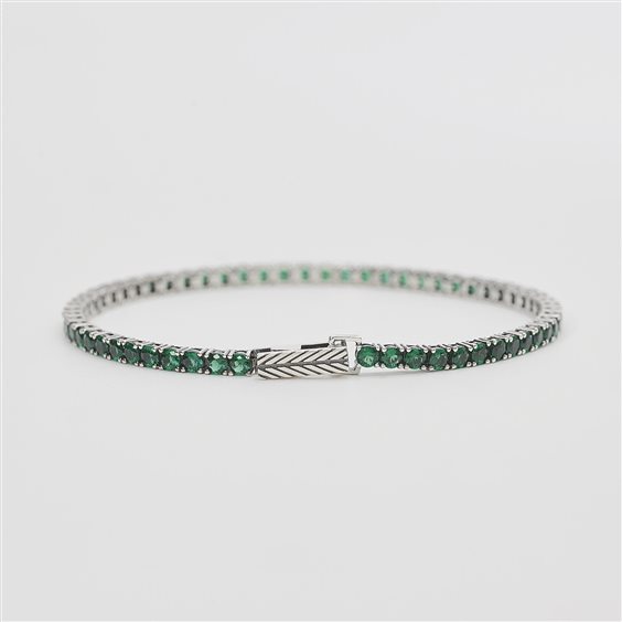 Bracciale argento 925/°°° rodiato con smeraldi sintetici Ø 3 mm e chiusura a pinza con molla, lunghezza 20 cm