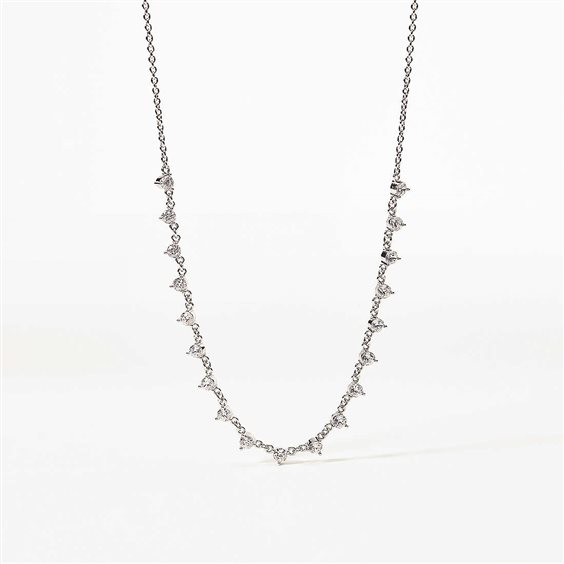 Girocollo in argento 925/°°° rodiato catena rolò con 19 castoni, larghezza 1.50 mm, lunghezza regolabile da 36 a 40 cm con zirconi bianchi Ø 3 mm