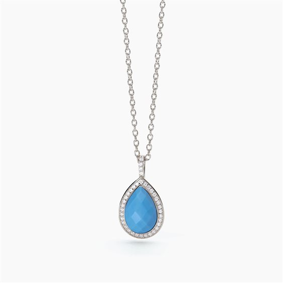 Girocollo in argento 925/°°° rodiato con catena forzatina 1.5 mm, cabochon turchese sfaccettato 12x8 mm e zirconi bianchi Ø 1 e 1.5 mm, lunghezza regolabile da 39 a 43 cm.