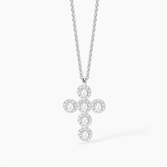 Girocollo in argento 925/ººº rodiato con catena forzatina 1.5 mm, pendente croce 17.5x23.5 mm e zirconi bianchi Ø 3 e 1.25 mm, lunghezza regolabile da 40 a 45 cm