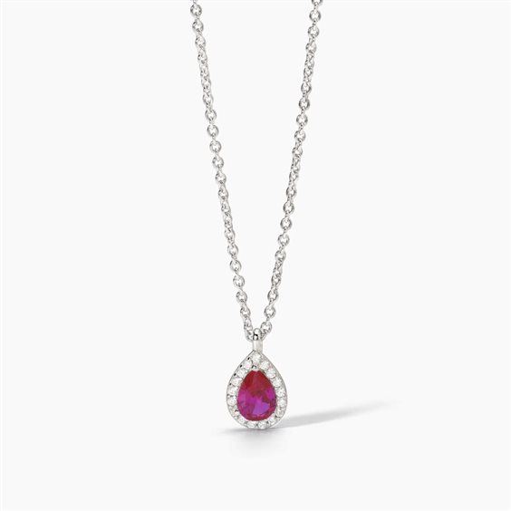 Collana Mabina in argento 925 con rubino sintetico a goccia e zirconi