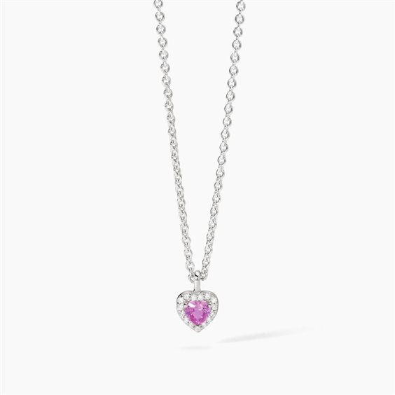 Girocollo in argento 925/°°° rodiato con catena forzatina 1.5 mm, pendente con tormalina sintetica taglio cuore 4x4 e zirconi bianchi Ø 1 mm, lunghezza regolabile da 39 a 43 cm