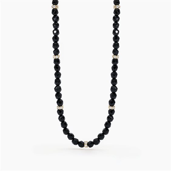 Girocollo in Argento 925 Placcato Oro Giallo 18K, Agate nere da 4mm e Zirconi Lunghezza regolabile da 38 a 42 cm