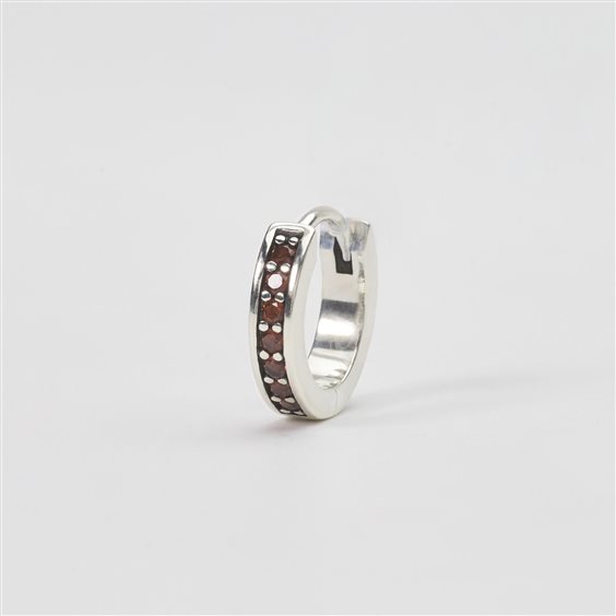 Orecchino in argento 925/°°° rodiato e finitura brunita Ø esterno 13.15 mm con zirconi marroni Ø 1.50 mm