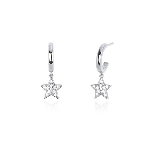 Orecchini in argento 925/°°° a cerchio con ciondolo stella e zirconi 1.25 mm e 1.30 mm, Ø esterno 10 mm, lunghezza 2 cm