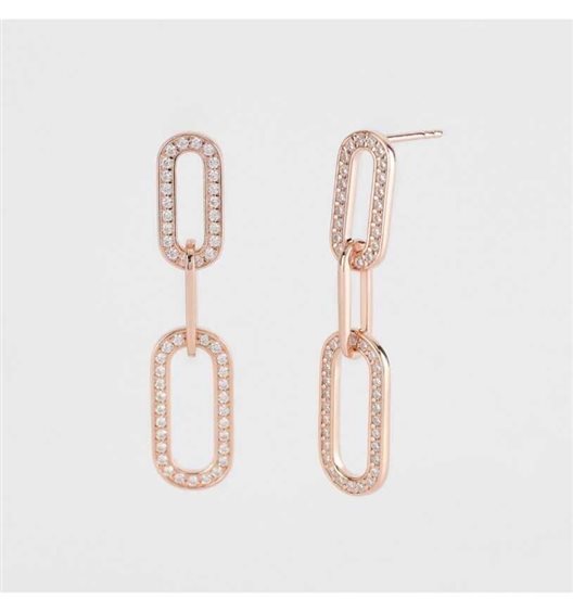 Orecchini pendenti da donna realizzati con maglie ovali in argento 925% placcato oro rosa. Elementi impreziositi da pave' di zirconi bianchi. Chiusura con farfallina a lobo.