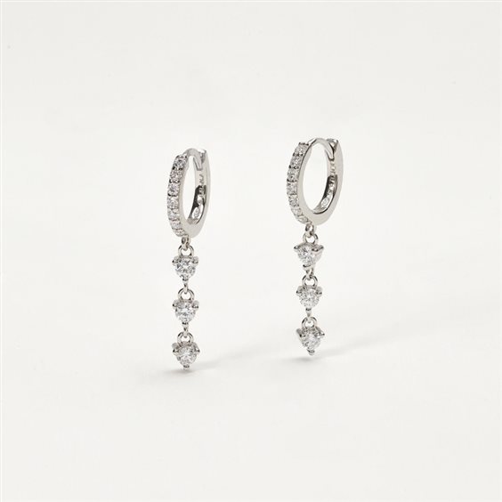 Orecchini Da Donna Di Mabina. Orecchini In Argento 925/°°° Rodiato A Cerchio Con Ø Esterno 11.90 Mm E Zirconi Bianchi Ø 1.50 Mm Con 3 Castoni A 3 Griffe E Zirconi Bianchi Ø 2.50 Mm