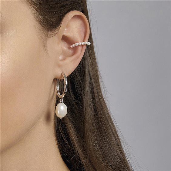 Orecchini argento 925/°°° rodiato con perle barocche Ø 11-12 mm, lunghezza 3.5 cm, Ø esterno 22 mm