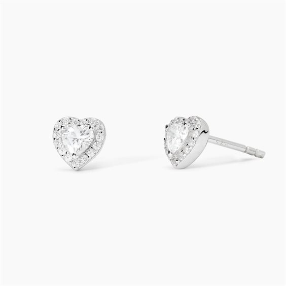 ORECCHINI A PALETTO A FORMA DI CUORE CUBIC ZIRCONIA INCOLORI IN ARGENTO 925‰