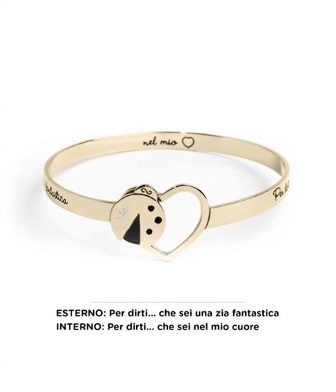 Bracciale rigido acciaio color oro con coccinella e frase dedicata alla zia 'Per dirti...che sei una zia fantastica' Collezione : Nel Mio Cuore 12 Materiale : acciaio, smalto nero, bianco e rosso