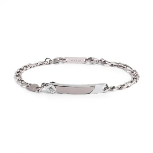 Bracciale catena della collezione Marlù Icons da uomo. Colore: argento. Il gioiello è in acciaio inossidabile 316L composto una catena figaro e una targa centrale con Rosa dei Venti. Chiusura a moschettone regolabile da 19 a 21 cm