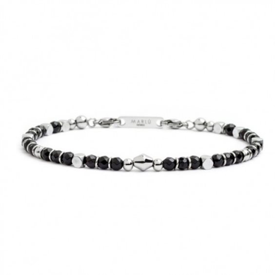Bracciale catena pepite agata nera ed elementi in ematite ed acciaio. Lunghezza 19/21 cm regolabile