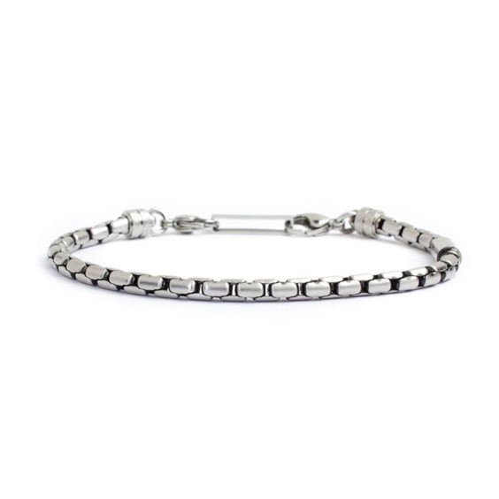 Bracciale in acciaio brunito con catena oval box chain 4 mm. Lunghezza 19/21 cm regolabile Collezione : Man Trendy 28 Materiali : Acciaio