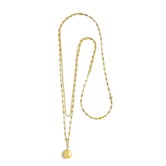 Collana chiama angeli con doppia catena in acciaio con pvd oro. La prima catena, a cuori, è più lunga, con pendente a sfera, in ottone con pvd oro, contenente un campanello chiama angeli. Sul lato anteriore della sfera è laserato la scritta "il dono più prezioso sei tu" sul retro "nel mio cuore". Pendente 17mm