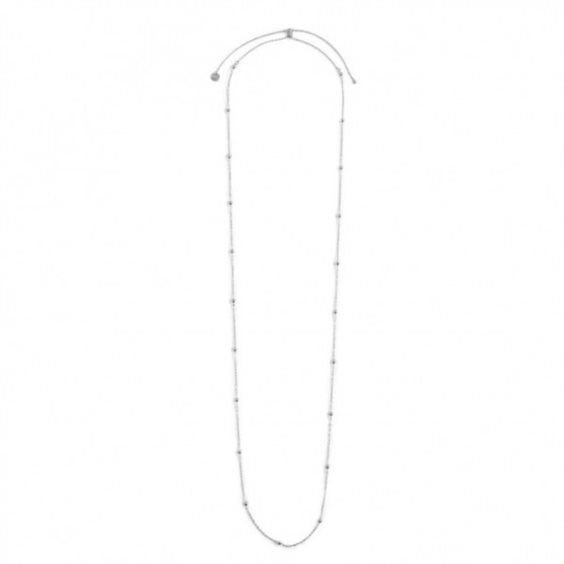Collana in acciaio con catena "O" e con catena con sfere di acciaio. Lunghezza totale 90 cm regolabile da 90 cm a 67 cm tramite tramite cursore cilindrico con silicone da 90 cm a 67 cm