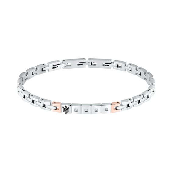 Bracciale Maserati uomo Bracciale in acciaio centrale con diamanti e estremità in pvd oro rosa logo in ip nero Misura regolabile da 18 cm a 21,5 cm