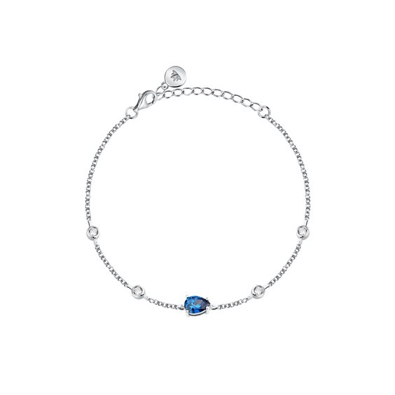 BRACCIALE MORELLATO TESORI - SAIW201 - Genere : Donna, Misura: 16+3cm, Colore: Silver, Morellato experience: Precious, Materiale: Argento 925‰ riciclato, Peso: 2.710 gr, Pietra: Zirconi, Colore pietra: Blu, Taglio pietra: Goccia, Certificato di autenticità: Sì, Confezione: Originale Morellato