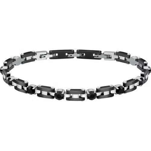 BRACCIALE UOMO MORELLATO COLLEZIONE URBAN. Bracciale in acciaio lucido con elementi trattati in PVD nero alternati con cristalli neri diametro 5mm. Misura 21,5cm. accorciabile a 18.5 cm. Chiusura a scatto. Peso: 33 gr. Certificato di autenticità e Scatola Originale Morellato.
