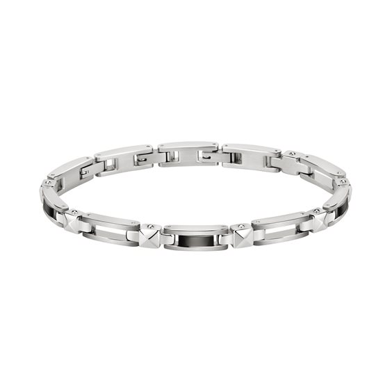 Bracciale uomo , acciaio 316 L , lunghezza cm 21 , accorciabile , elementi in ceramica nera. Immagine indicativa , la confezione può variare di forma e colore.