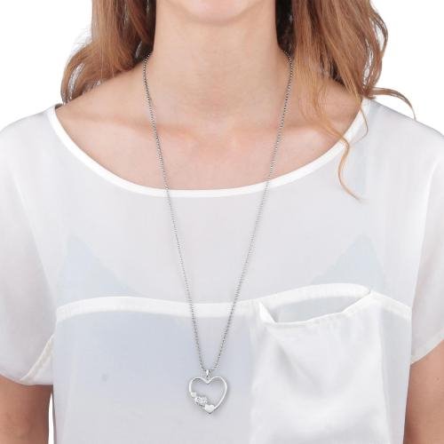 Collana donna , acciaio 316L , catena maglia rolò , lunghezza cm 75 regolabile fino a cm 70 , pendente cm 3.5 , cristallo bianco incastonato. Immagine indicativa , la confezione può variare di forma e colore.