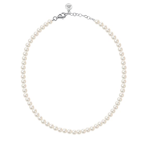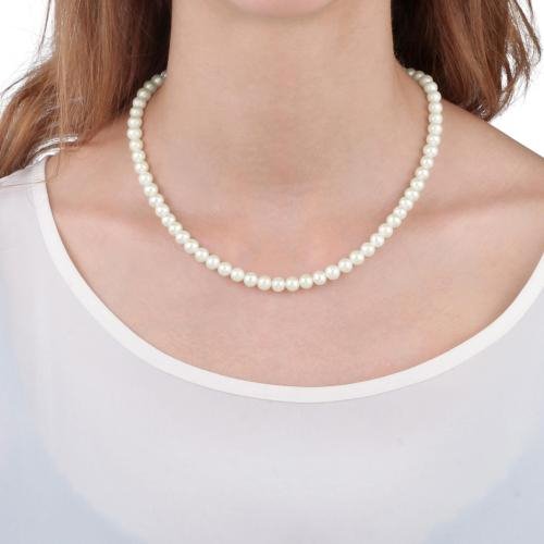 Collana donna , perle naturali bianche coltivate mm 6-6.5 , lunghezza cm 45 regolabile fino a cm 40 , chiusura in argento 925%. Immagine indicativa , la confezione può variare di forma e colore.