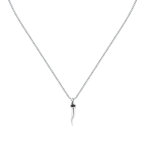 COLLANA MORELLATO MOTOWN - SABH47 - Genere : Uomo, Misura: 45|5, Colore: Silver, Morellato experience: Man, Modello: Pendente, Materiale: Acciaio, Cristalli, Peso: 5,600 gr, Diametro Perle: ∅1.5mm mm, Pietra: Cristallo, Colore pietra: Nero, Simbolo: Cornetto, Certificato di autenticità: Sì, Confezione: Originale Morellato