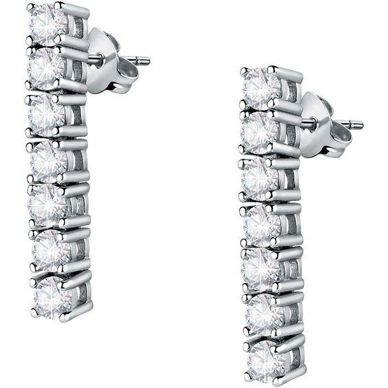 Orecchini Da Donna Di Morellato Della Collezione Scintille. Gioiello Realizzato In Ottone + Placcatura Argento Con Zirconi Di Colore Bianco. Dimensioni: 20.9X2.9 Mm. La Referenza È Saqf07