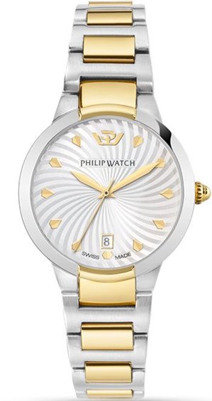 Prodotto: orologio solo tempo donna Philip Watch Corley R8253599505 Orologio Philip Watch Della Collezione Corley. Orologio Solo Tempo Con Movimento Al Quarzo Con Tre Lancette: Ore Minuti E Secondi, Diametro Della Cassa Di Mm 34, Tipo Di Cassa: Tonda.Vetro Zaffiro Antigraffio , Il Cinturino/Bracciale È In Acciaio Bicolare Di Color Acciaio E Pvd Oro Giallo. Resistenza All'Acqua Di 5 Atm.