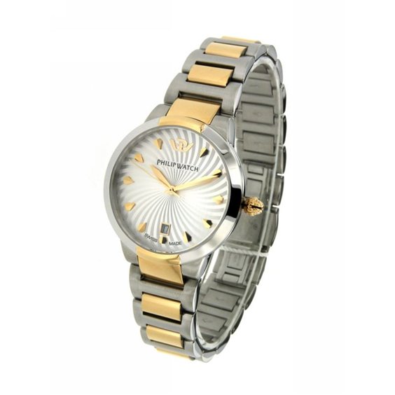 Prodotto: orologio solo tempo donna Philip Watch Corley R8253599505 Orologio Philip Watch Della Collezione Corley. Orologio Solo Tempo Con Movimento Al Quarzo Con Tre Lancette: Ore Minuti E Secondi, Diametro Della Cassa Di Mm 34, Tipo Di Cassa: Tonda.Vetro Zaffiro Antigraffio , Il Cinturino/Bracciale È In Acciaio Bicolare Di Color Acciaio E Pvd Oro Giallo. Resistenza All'Acqua Di 5 Atm.